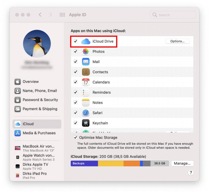 On iOS, iCloud must also be activated. To do this, open the app Settings and then switch to iCloud. If you are not yet signed in, you have to sign in with your Apple ID. Then activate either iCloud Drive or Documents & Data: